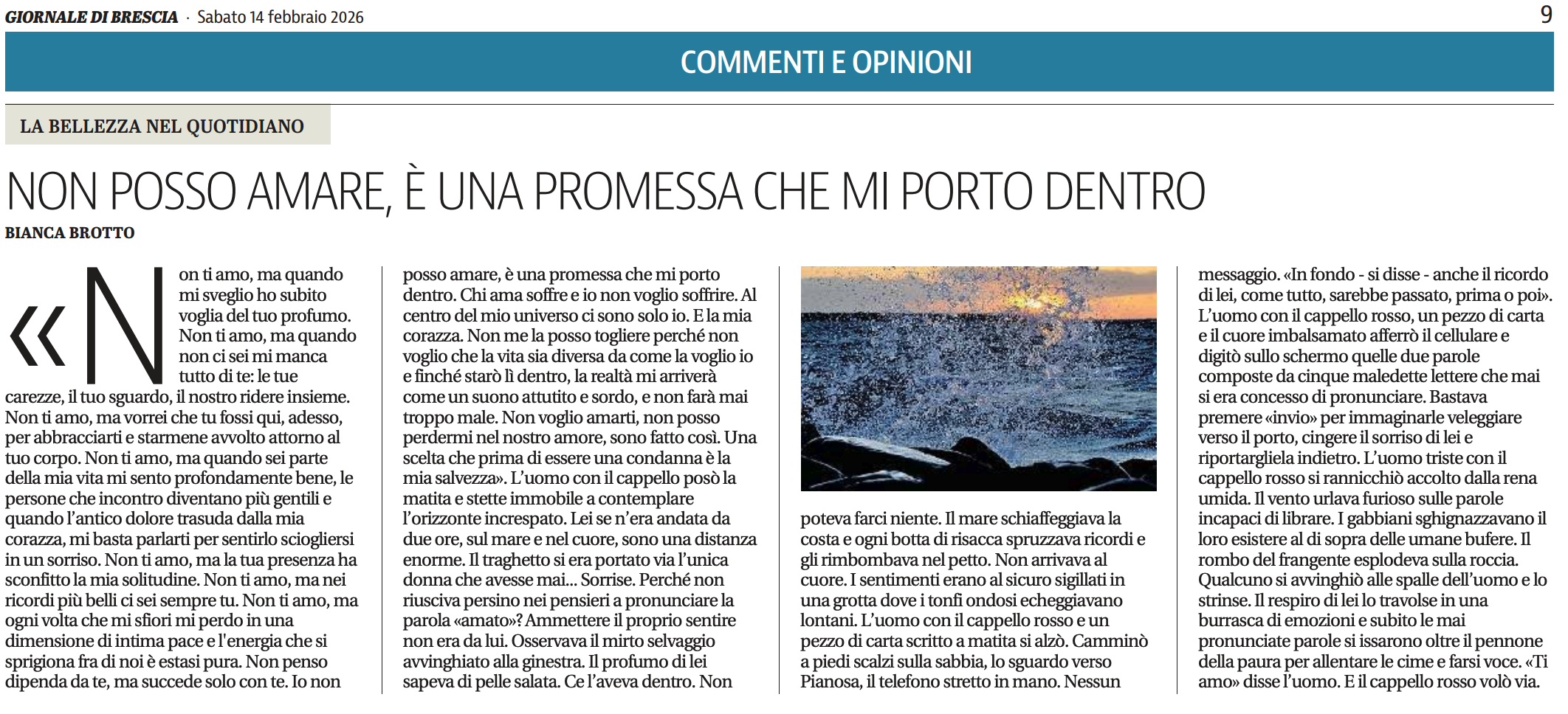 L’uomo con il cappello rosso, un pezzo di carta e il cuore imbalsamato afferrò il cellulare e digitò sullo schermo quelle due parole composte da cinque maledette lettere che mai si era concesso di pronunciare. Bastava premere «invio» per immaginarle veleggiare verso il porto, cingere il sorriso di lei e riportargliela indietro.
