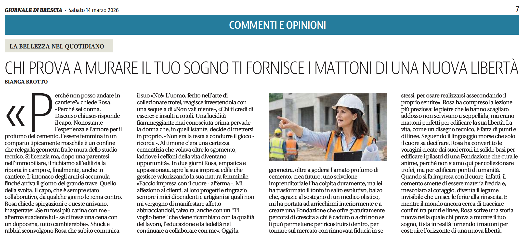 «Perché non posso andare in cantiere?» chiede Rosa. «Perché sei donna. Discorso chiuso» risponde il capo.
