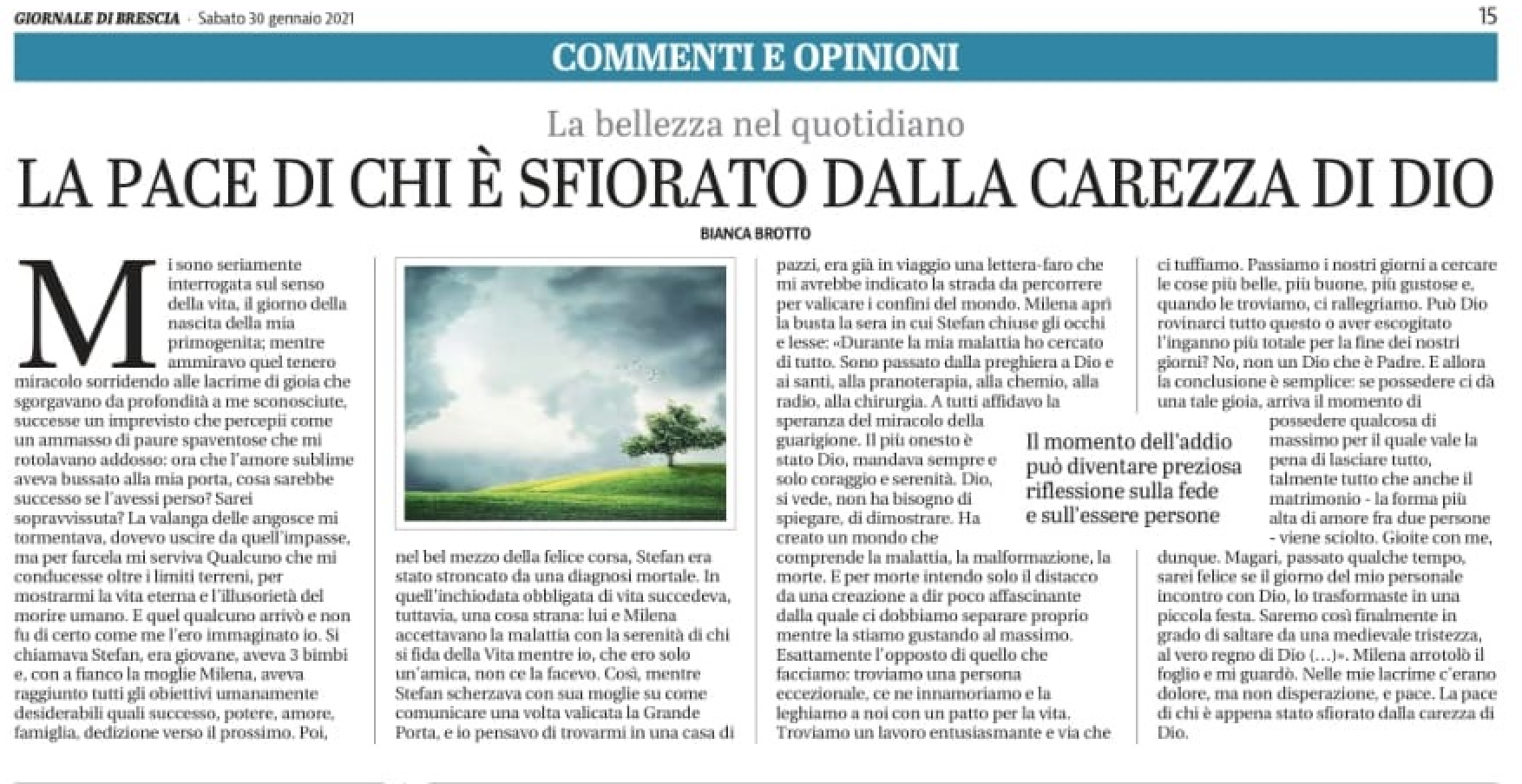 Si chiamava Stefan, era giovane, aveva 3 bimbi e, con a fianco la moglie Milena, aveva raggiunto tutti gli obiettivi umanamente desiderabili quali successo, potere, amore, famiglia, dedizione verso il prossimo. Poi, nel bel mezzo della felice corsa, Stefan era stato stroncato da una diagnosi mortale.
